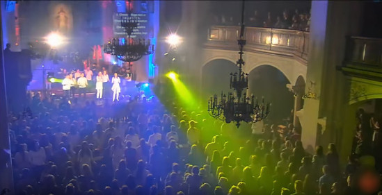 Tutaj akcja się rozwija... są tańce, dziwne gesty, pląsy itp. Jednak pozostałe zdjęcia pokażę w drugiej części tego posta, kiedy osobno opisywać będę taniec, światła i flagi we współczesnym (masońskim) kościele. Teraz jedynie w skrócie, kilka z nich.